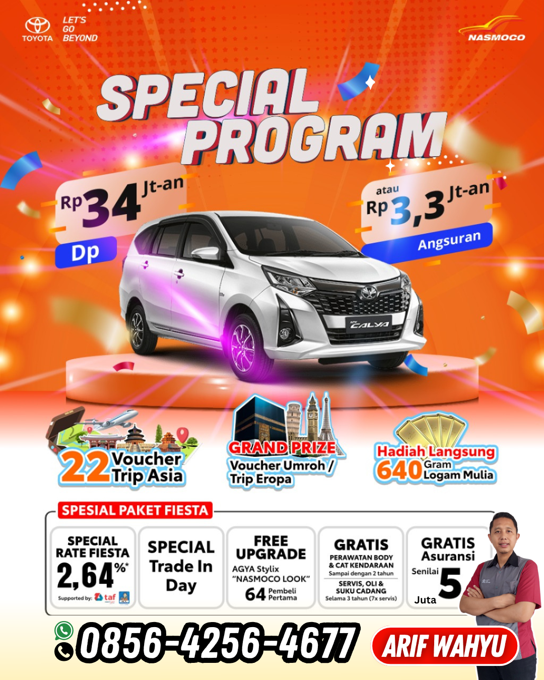 PROMO HUT NASMOCO TOYOTA KE-64 BONUS EMAS DAN UMROHSaat yang tepat memiliki mobil toyota impian keluarga anda. Dengan promo Dp Rendah dan angsuran