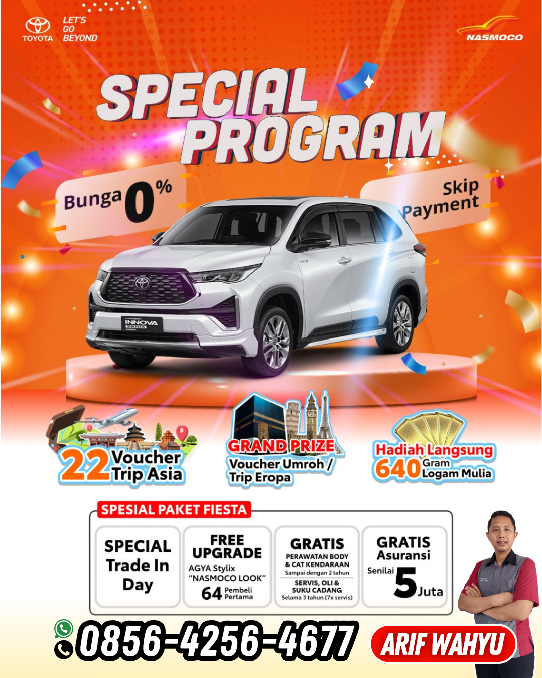 PROMO HUT NASMOCO TOYOTA KE-64 BONUS EMAS DAN UMROHSaat yang tepat memiliki mobil toyota impian keluarga anda. Dengan promo Dp Rendah dan angsuran
